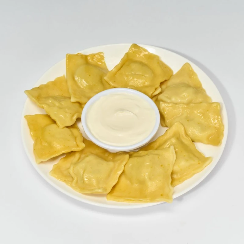 МУЧНОЕ КУЛИНАРНОЕ ИЗДЕЛИЕ С МЯСОМ ПТИЦЫ ВАРЕНОЕ ОХЛАЖДЕННОЕ. РАВИОЛИ С КУРИЦЕЙ. Состав: филе грудки куриное, вода питьевая доочищенная, мука пшеничная высший сорт, лук репчатый свежий, меланж яичный жидкий пастеризованный охлажденный, сыр моцарелла (молоко нармализованное, соль, уплотнитель - хлорид кальция, молокосвертывающий фермент микробиального присхождения, бактериальная закваска термофильных культур), сливки 22%, масло сливочное 72,5% (пастеризованные сливки), специя шафран, специя прованские травы, переч черный молотый, поваренная соль, пищевая добавка сорбат калия.