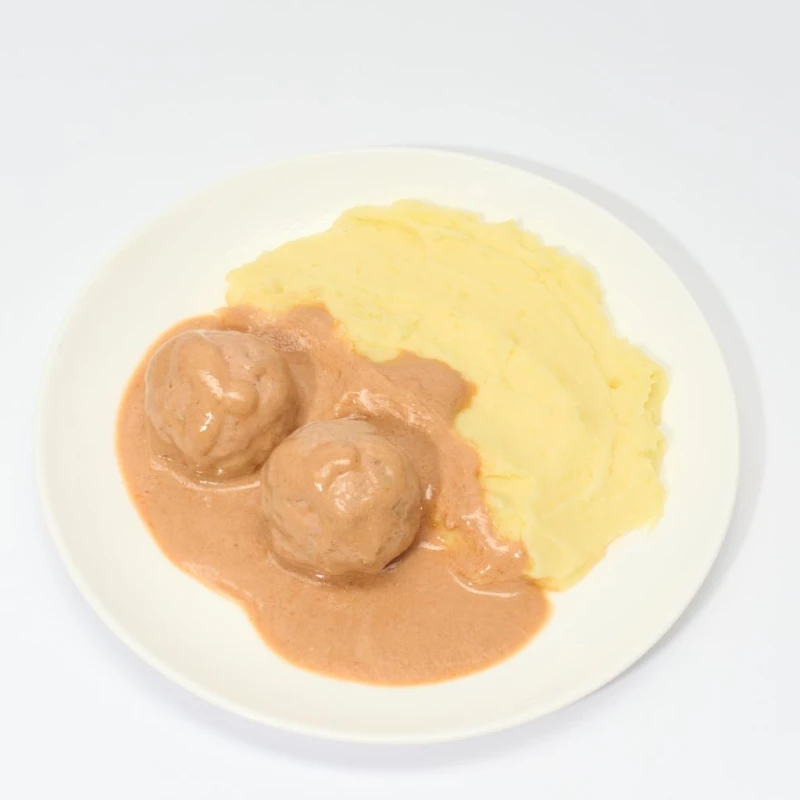 Тефтели в сливочно-томатном соусе с картоофельным пюре